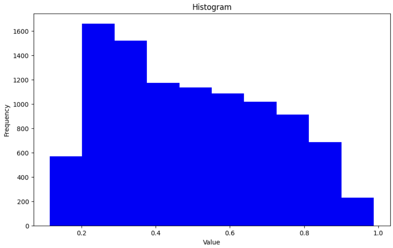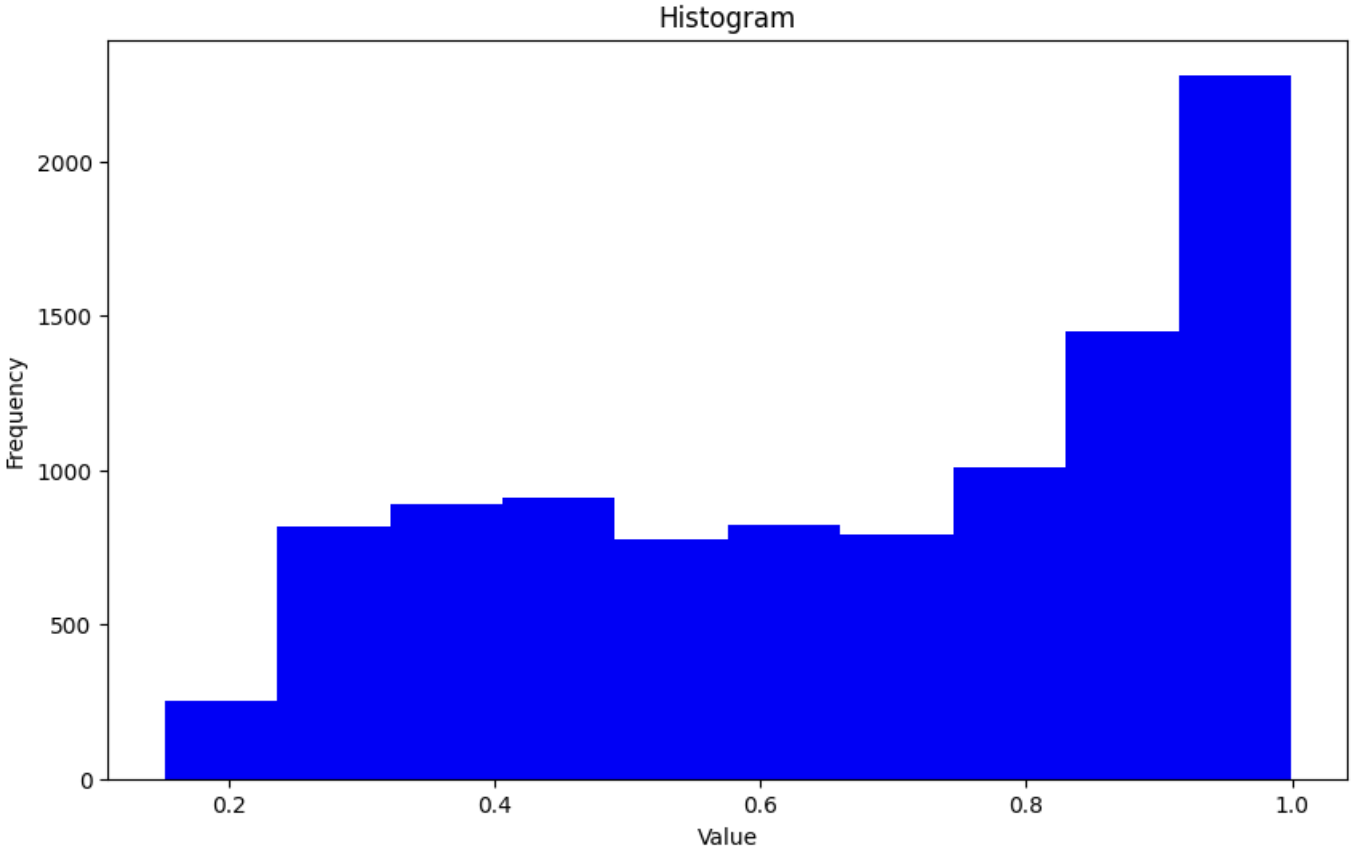 아래는 ciafr10 데이터 셋을 활용하여, 모델을 학습 후 Test Dataset에 대해 Max Score 값들을 히스토그램으로 시각화 한 결과 입니다.
