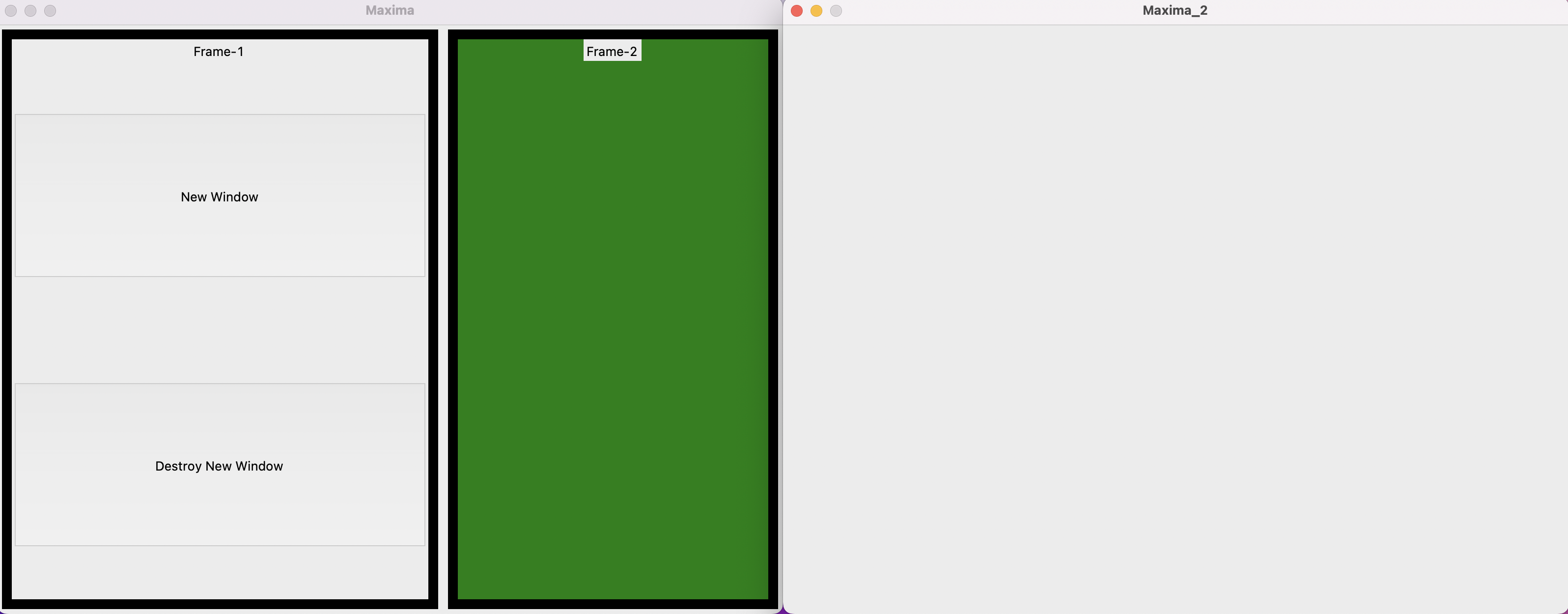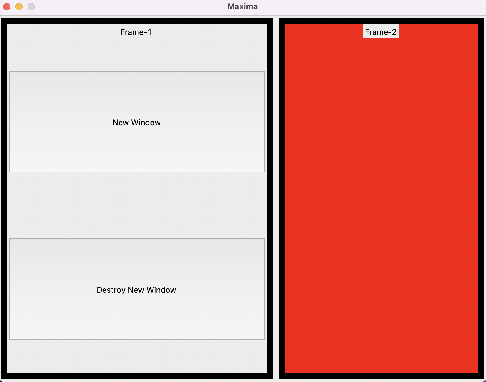 - Frame-1 내부에 2개의 Button(버튼)을 사용하여, New Window와 Destroy New Window 기능을 적용합니다.