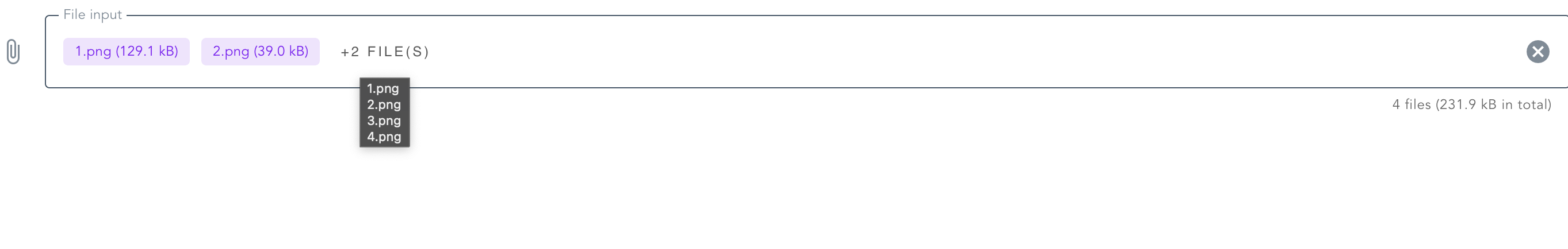 <v-file-input label="File input w/ chips" chips multiple></v-file-input>